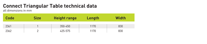 Our Connect range of rectangular and triangular tables have been designed to encourage good posture when your child is seated. All the tables are adjustable in height and extremely functional.