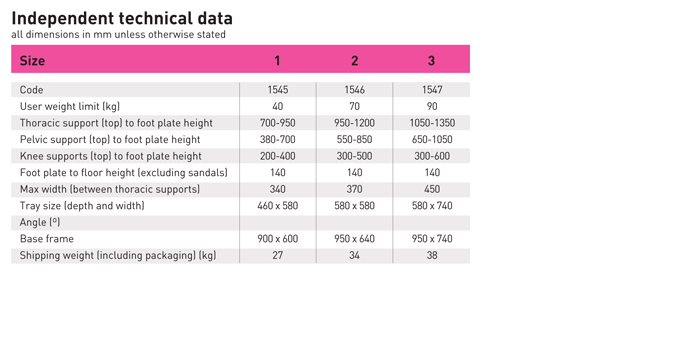 The Independent supports your child at the feet, knees, hips and trunk using a wide range of supports, which are all independently height, width and angle adjustable.