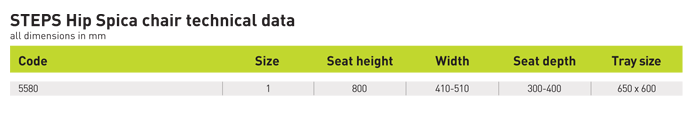 The STEPS Hip Spica is designed as a highly adjustable and supportive chair for seating children from the age of 8 months who are in a hip spica cast. The chair has been designed for STEPS a national charity for children with lower limb conditions.